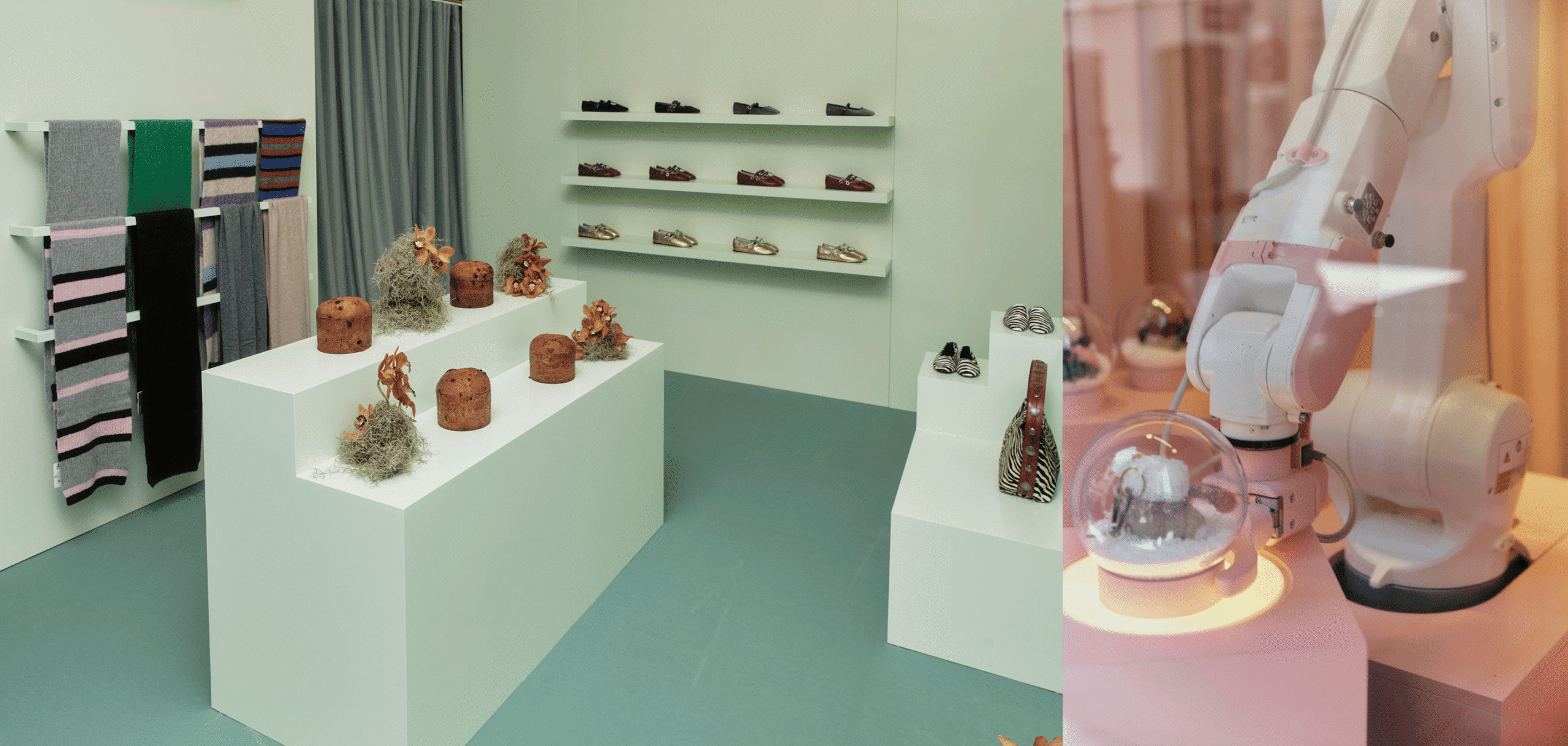 The journey led guests through a lobby featuring a grand piano, a suite dedicated to jewelry and handbags, and a cocktail bar repurposed to showcase footwear. To enhance the hospitality theme, the experience included a customization station for bags, a daily photobooth, and scheduled treats like hot chocolate and live music.